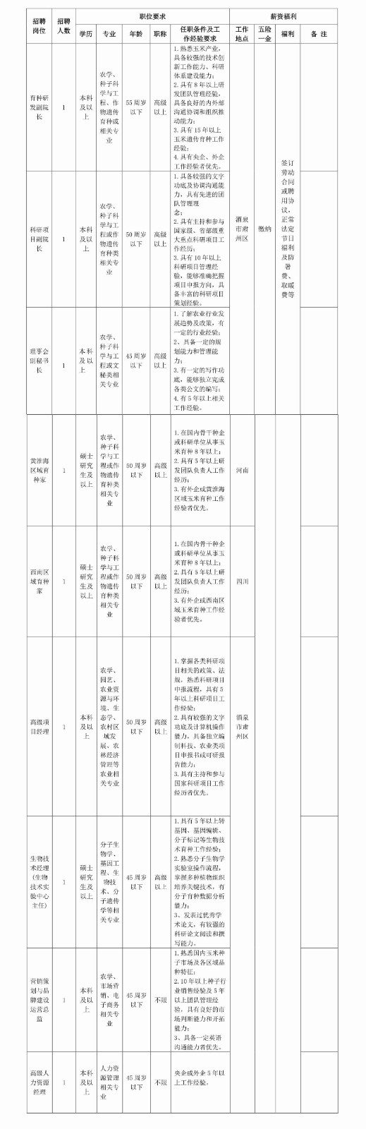 ????????甘肅省玉米種業研究院根據發展戰略需要,現擬向國內外公開招聘、柔性引進、集團公司內部選聘等方式招錄核心崗位工作人員9名,現將具..